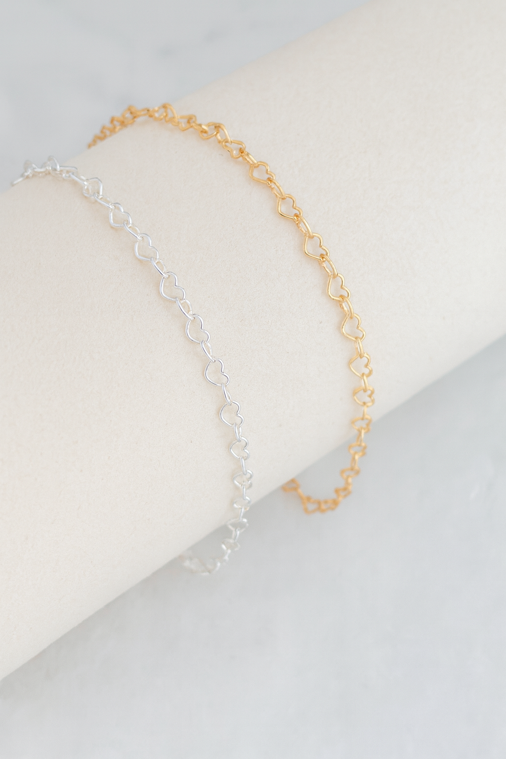 Available in your choice of either 14k Gold Filled or Sterling Silver, each bracelet is crafted with fine open-heart links that shimmer softly against the skin. Perfect as a thoughtful keepsake for new mums, daughters, or anyone who treasures connection.